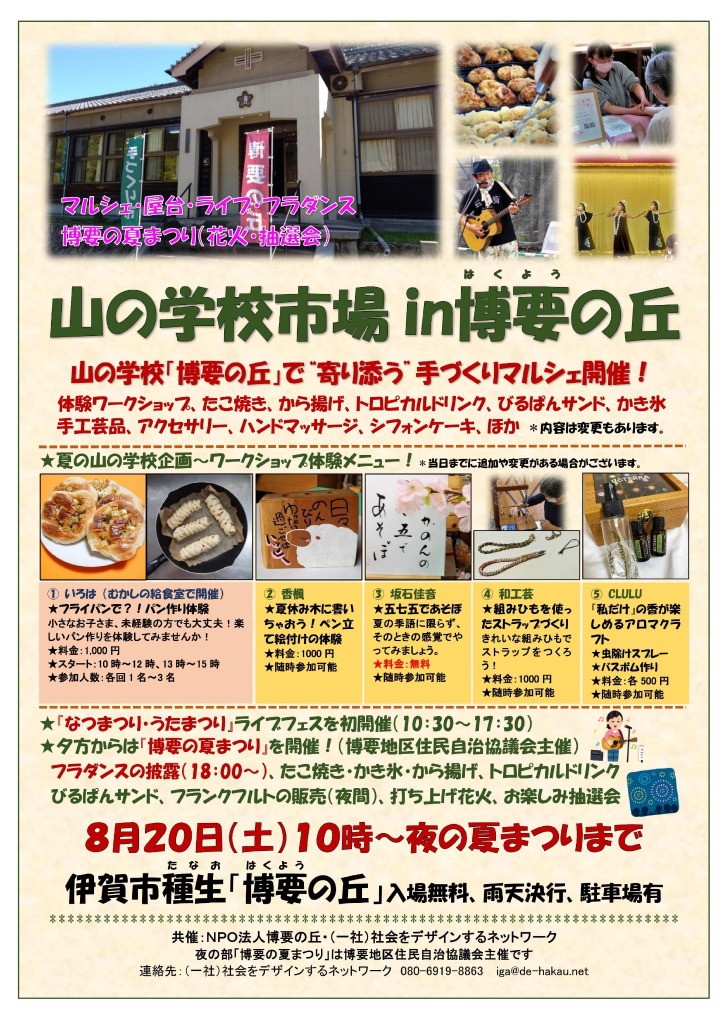 8月20日(土)山の学校市場 in博要の丘 出展のお知らせ