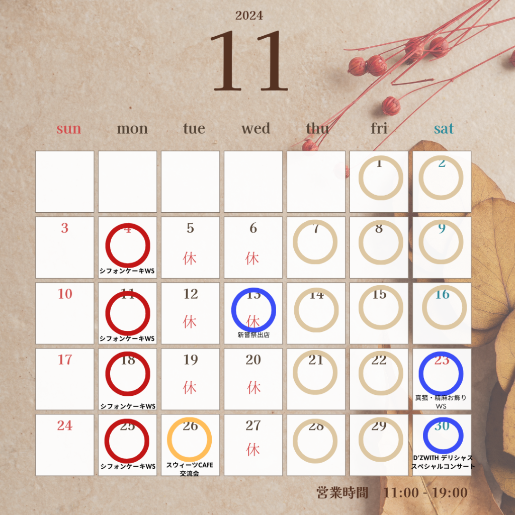 ●11月はクリスマス用にチョコレートのシフォンケーキレッスンを毎週月曜日に開催します。
