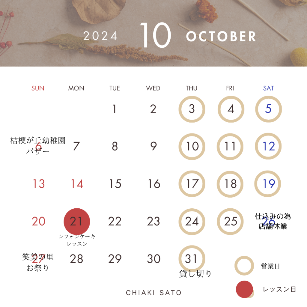 10月21日 シフォンケーキレッスン AM10:00~ 3名さま募集