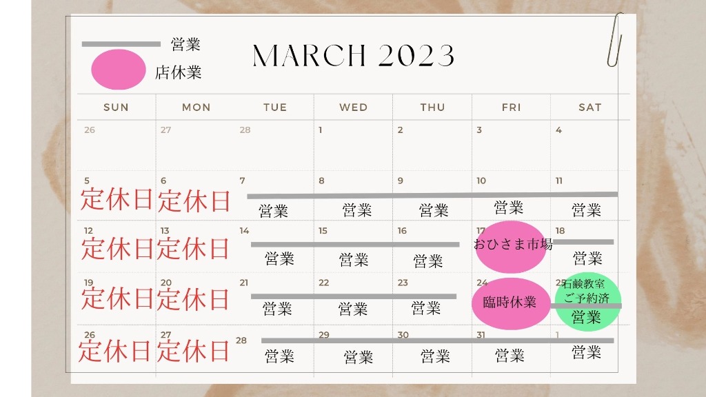 店舗は3月24日金曜日が臨時休業となっていますのでお間違えの無いようにお願い致します。
